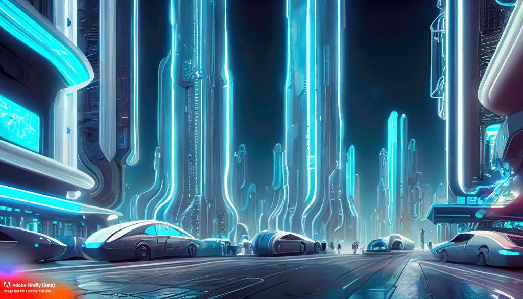 Debbie and Jimmy landed back in the same alley where they left, but everything had changed. No longer were the streets grungy and empty of life. Everythings was pristine and ordered, chrome and steel shining in the sun. Robots and vehicles whirred by the alley, and the crowds of people, all seemed headed somewhere.
